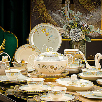 Luxe Porseleinen Dinerset Keramische Gouden Randborden Schotel Dessertschalen En Soepkommen Sets 62 Stuks Serviesgoed Voor Thuis