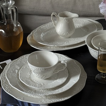 Europa Reliëf Keramische Dinerbord Set Retro Reliëf Kant Bloem Wit Serviesgoed Voor Thuis Restaurant