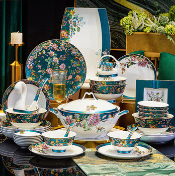 Europa Fijn Porselein Serviesgoed Elegant Bloempatroon Schotelplaten Keramisch Servies Set Voor 4 6 10 Personen